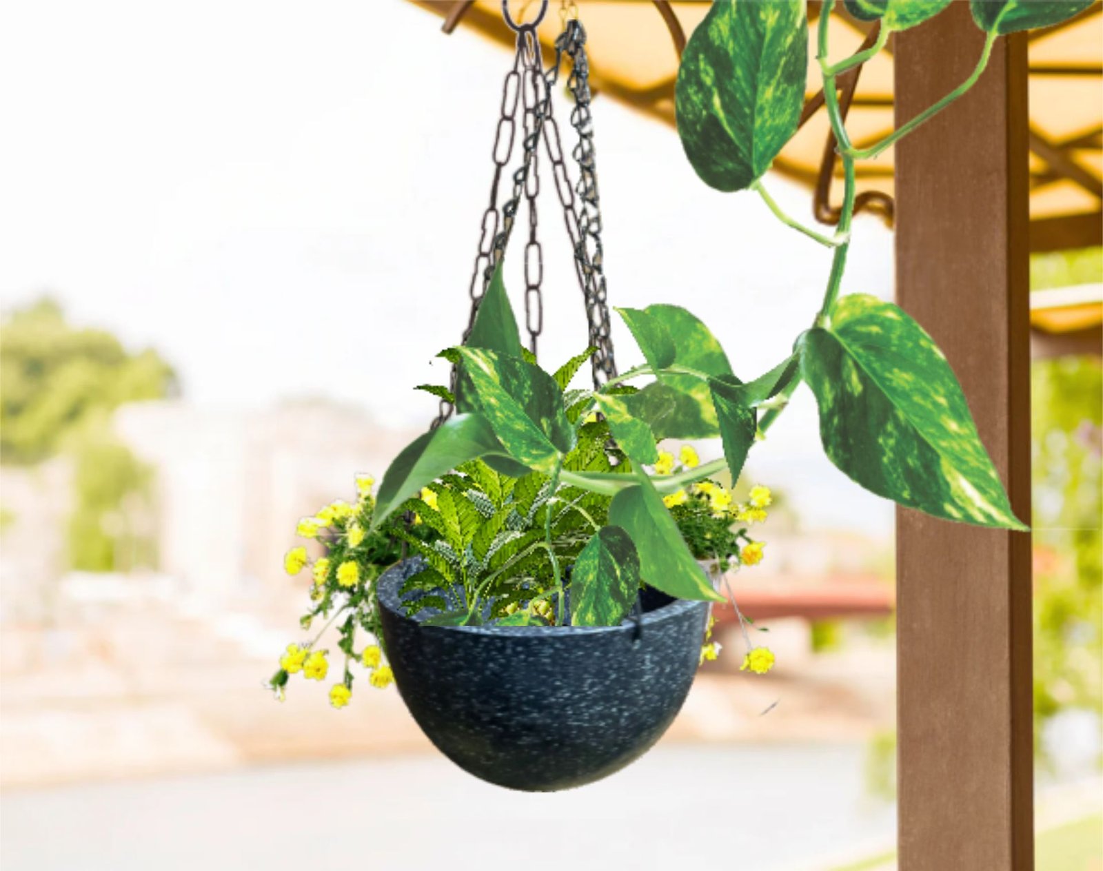 A versatile planter designed to suspend plants gracefully from ceilings or walls. Perfect for adding greenery in creative, space-saving ways both indoors and outdoors.